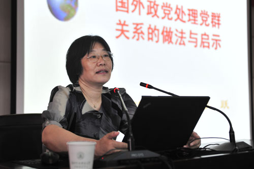 报告会上,姜跃教授凭借长期从事世界政党比较研究的雄厚理论基础和丰富经验,穿插辅之以英、法、德、意、俄、新加坡以及西亚、拉美诸国的生动案例,主要从“面对社会变化,巩固和扩大党的社会基础,争取更广泛的支持”、“面对意识形态的困境,强化以政策和政绩获取民心”、“在效率与公平之间寻求平衡,保持经济、社会的可持续发展”、“发展党内民主和社会民主,拓展沟通渠道,以有效的机制和体制保持党与民众的经常性联系”、“反腐倡廉,保持清正廉洁的公众形象”等五个方面,系统介绍了国外政党在处理党群关系以及推进防腐倡廉等方面的主要做法、经验、教训和启示,使与会人员从新的视角深刻体会和感悟了新时期党的干部队伍必须密切联系群众、加强作风建设、保证清正廉洁的重要性、现实性和紧迫性。