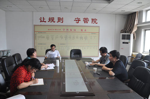 姚晓霞汇报了经管学院教育实践活动近期开展的情况。并对经管学院在学习教育、征求意见环节的下一步活动安排做了介绍。