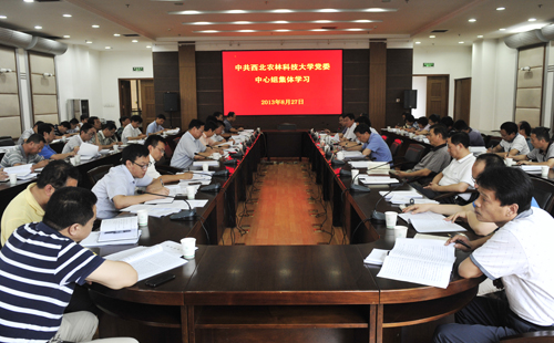 8月27日下午,学校党委中心组在国际交流中心210会议室召开中心组扩大会议,专题学习教育部直属高校工作咨询委员会第23次全体会议精神。校党委书记梁桂主持会议并传达刘延东副总理在大会上的讲话精神。孙其信校长,校党委中心组全体成员,各学院院长参加了会议。